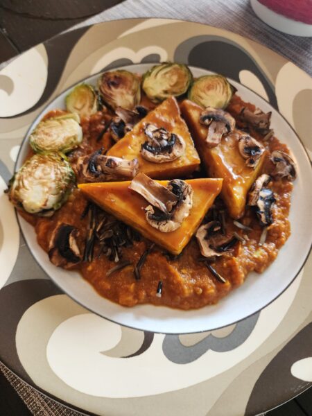 Easy Orange Tofu with Wild Rice and Pumpkin Miso Gravy